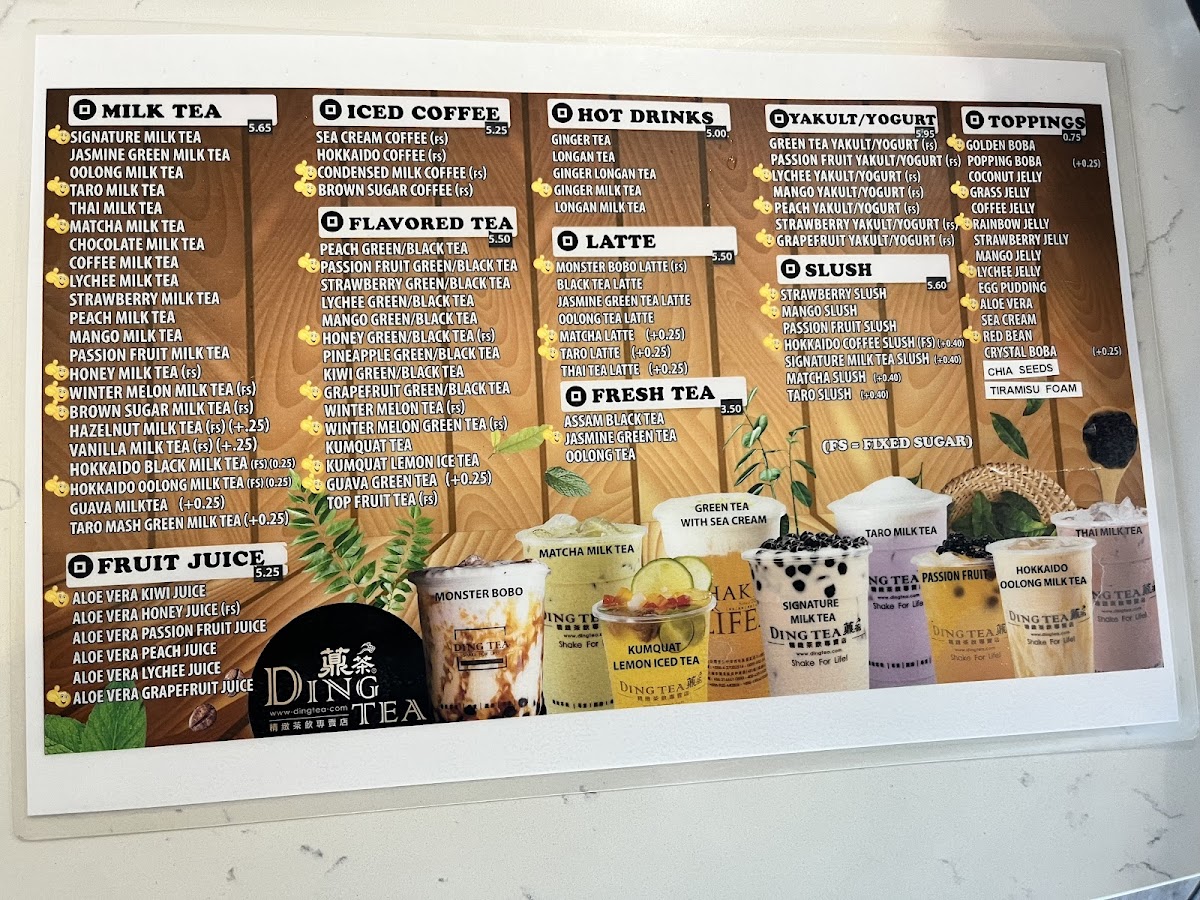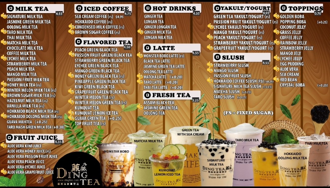 As a reviewer, the menu at Ding Tea S Cooper St offers a well-balanced selection of refreshing drinks that cater to both classic milk tea lovers and those looking for fruitier, more vibrant options. The Taro Milk Tea with Golden Boba stands out for its creamy texture and rich taro flavor, complemented perfectly by the chewy sweetness of golden boba. For something lighter and more refreshing, the Strawberry Slush delivers a bright, fruity taste that feels especially satisfying on a warm day. Meanwhile, the Oolong Latte with Lychee Jelly provides a more aromatic and slightly floral experience, with the smooth oolong tea blending nicely with the subtle sweetness and texture of lychee jelly. Overall, the menu showcases a nice variety of flavors and textures, making it easy for customers to find a drink that suits their taste, whether they prefer creamy, fruity, or tea-forward options.